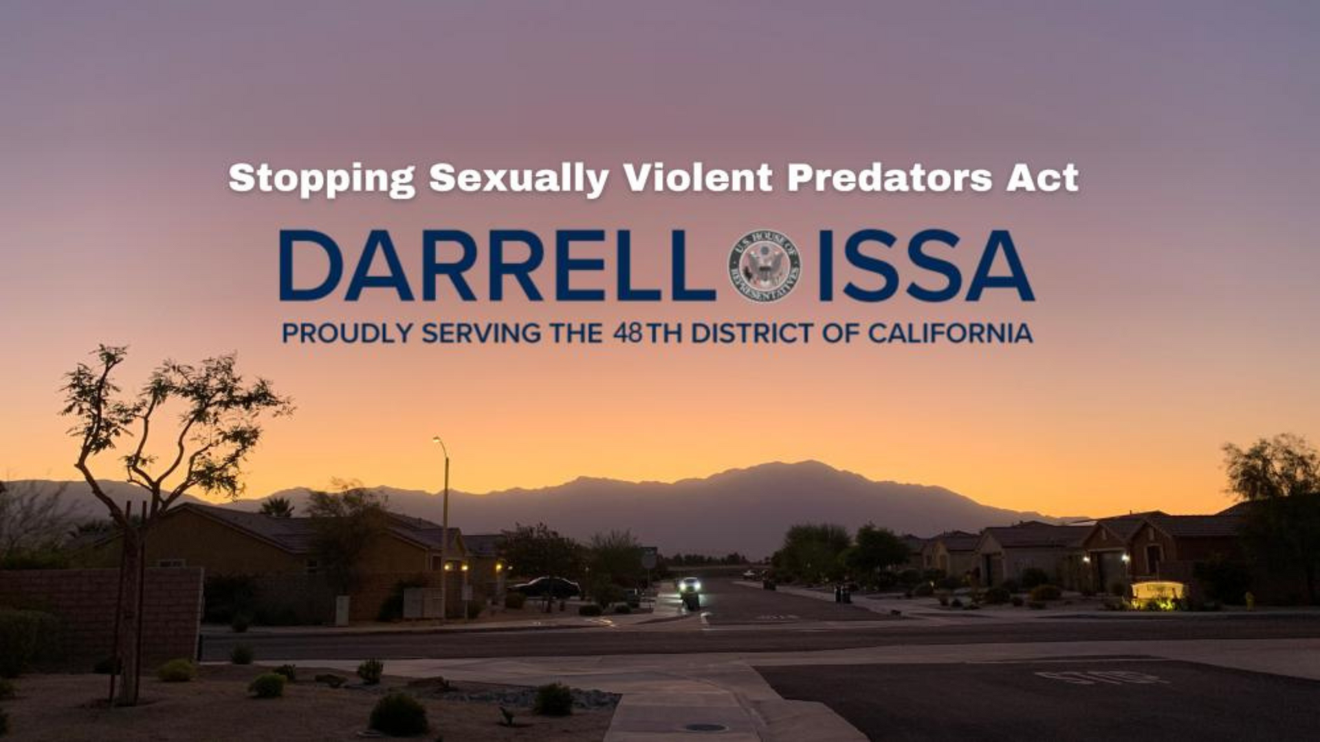 For more detailed information on the Stopping Sexually Violent Predators Act and related statements by Congressman Darrell Issa, please refer to his official website: Issa’s Press Releases on the Legislation.
