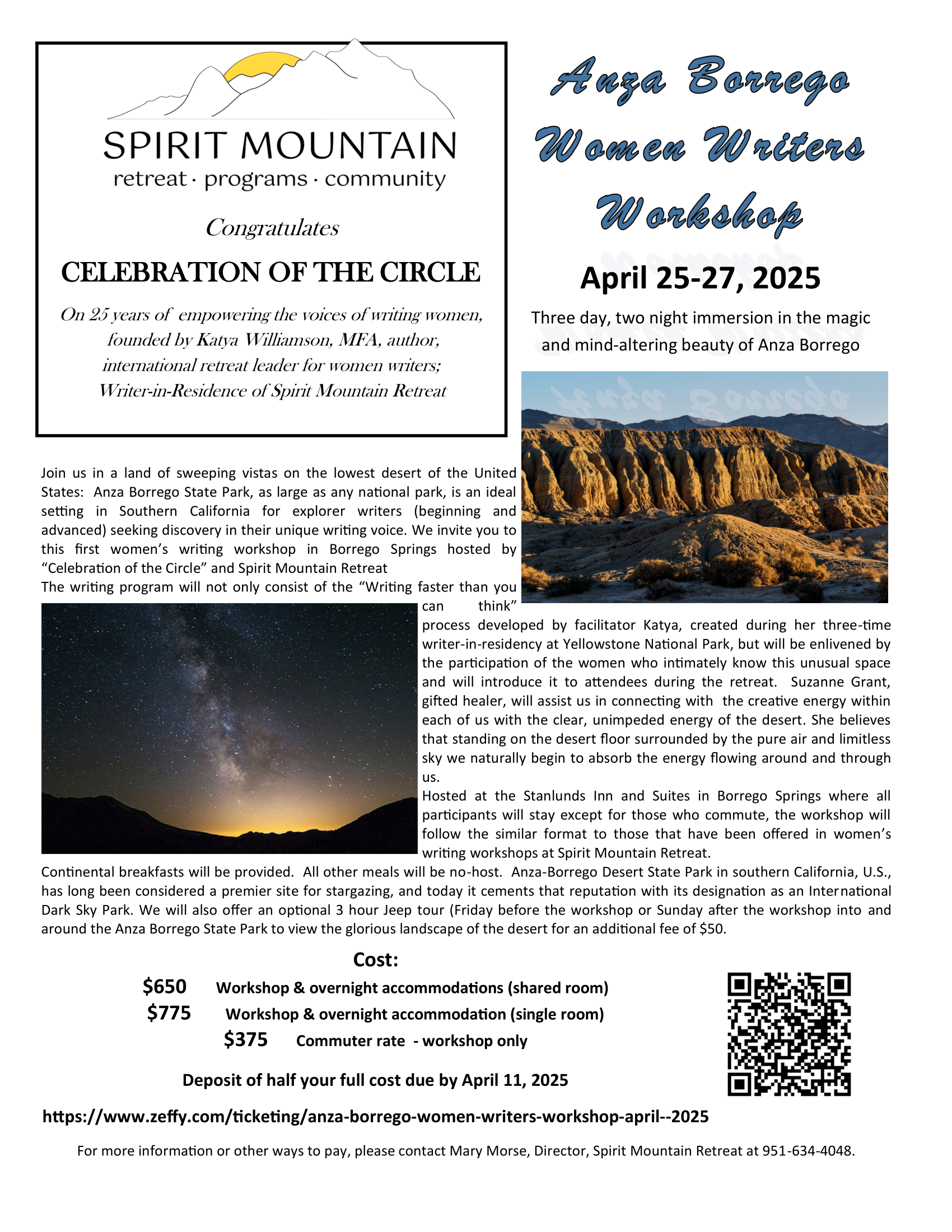 Contact Mary Morse, Director, Spirit Mountain Retreat: 951-634-4048