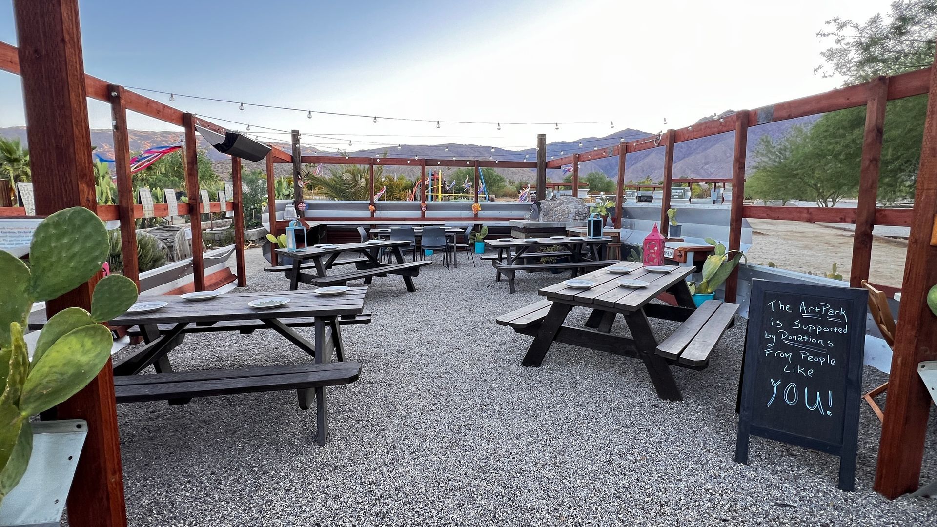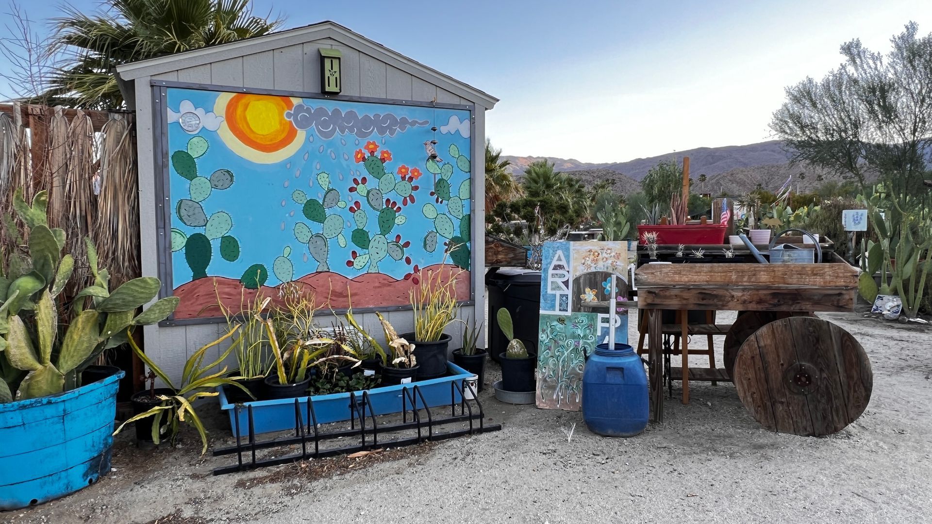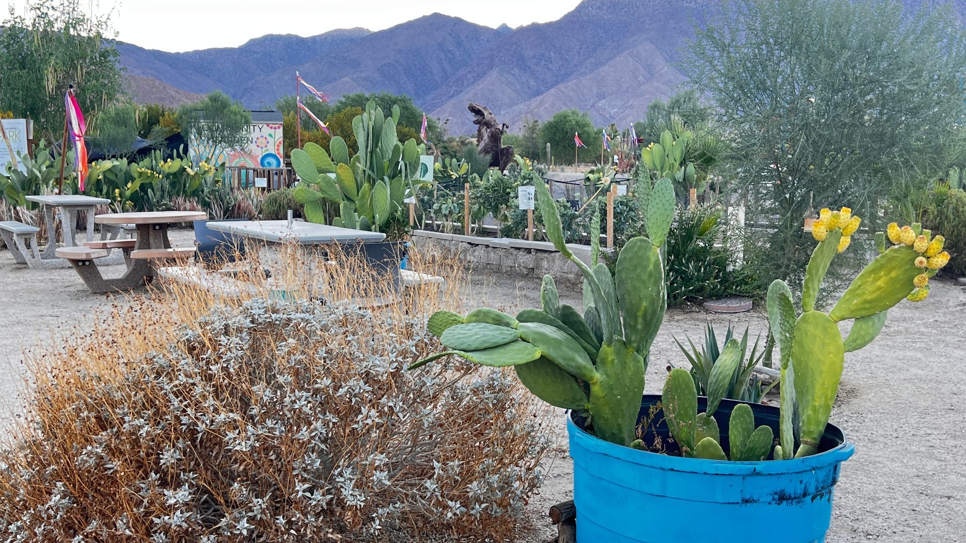 Borrego Springs ArtPark, located within the Borrego Art Institute campus, is a vibrant oasis where community gardens, an orchard, and the stunning desert landscape come together.