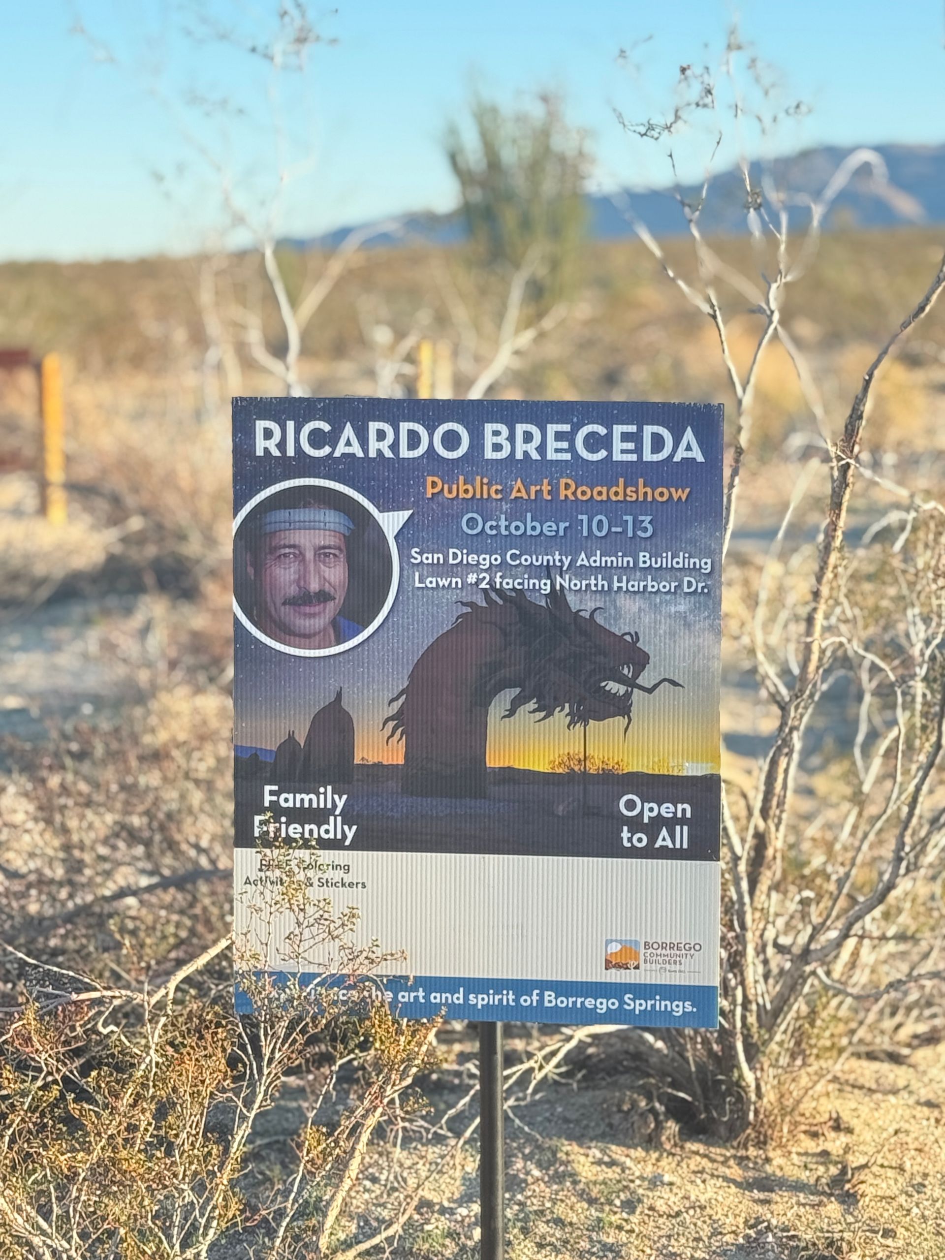 A permanent interpretive sign was also introduced during the event, explaining the meaning behind the sculptures and Breceda’s long-standing impact on desert art in Borrego Springs.