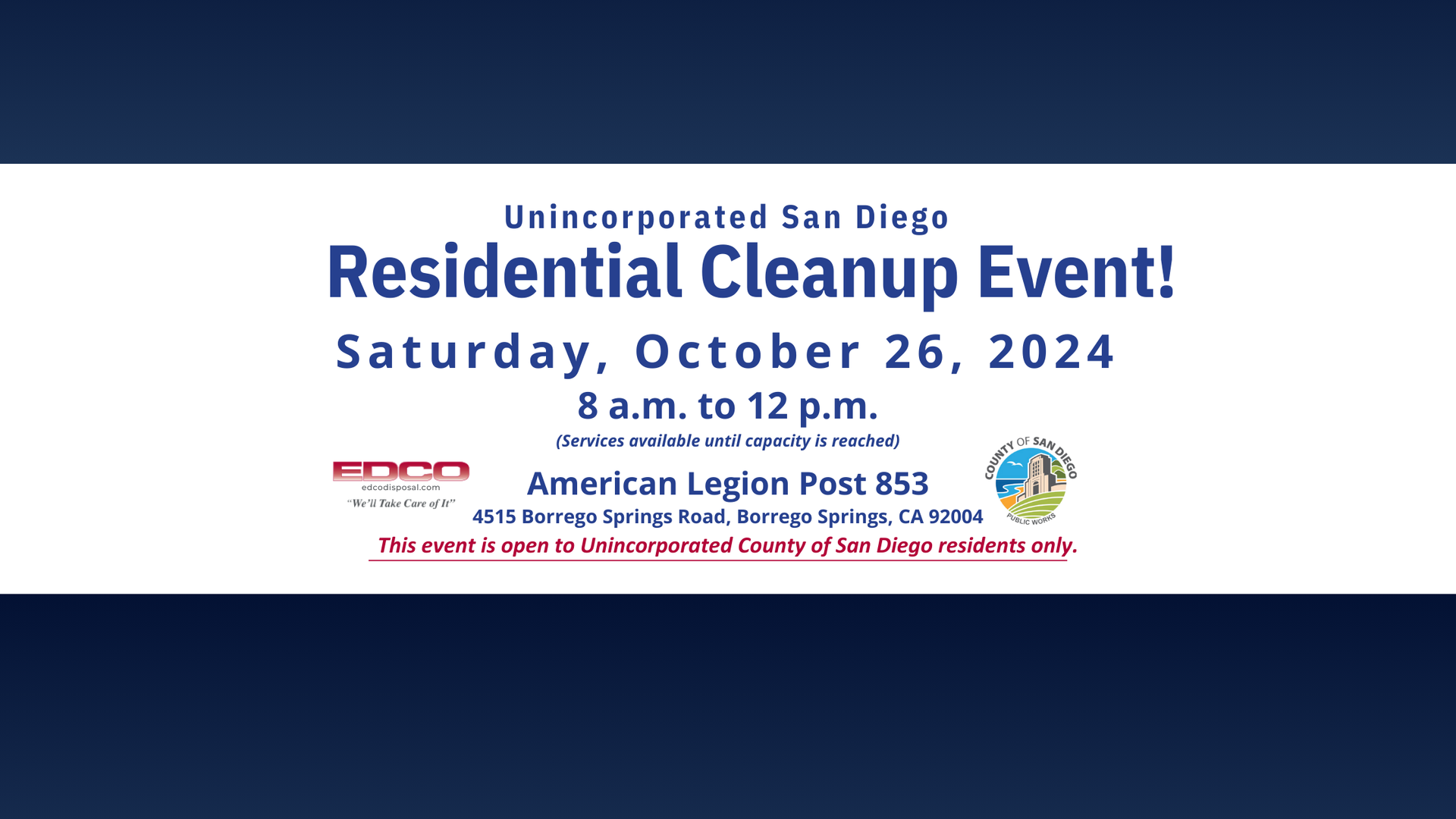 - Who Can Attend: This event is open to residents of Unincorporated San Diego County only.