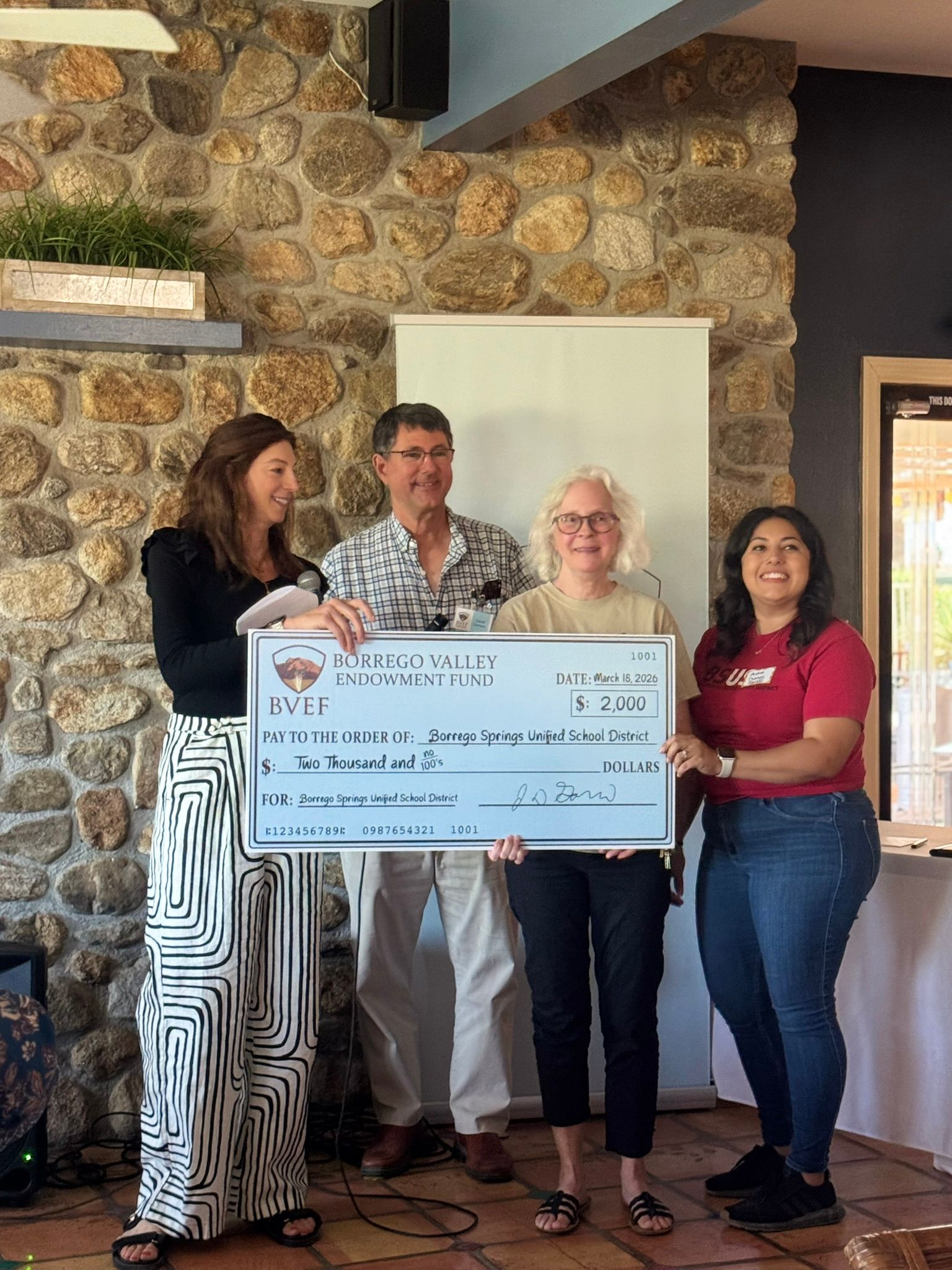 BVEF also highlighted grants funded through its Community Endowment, which supports broader projects across Borrego Springs.