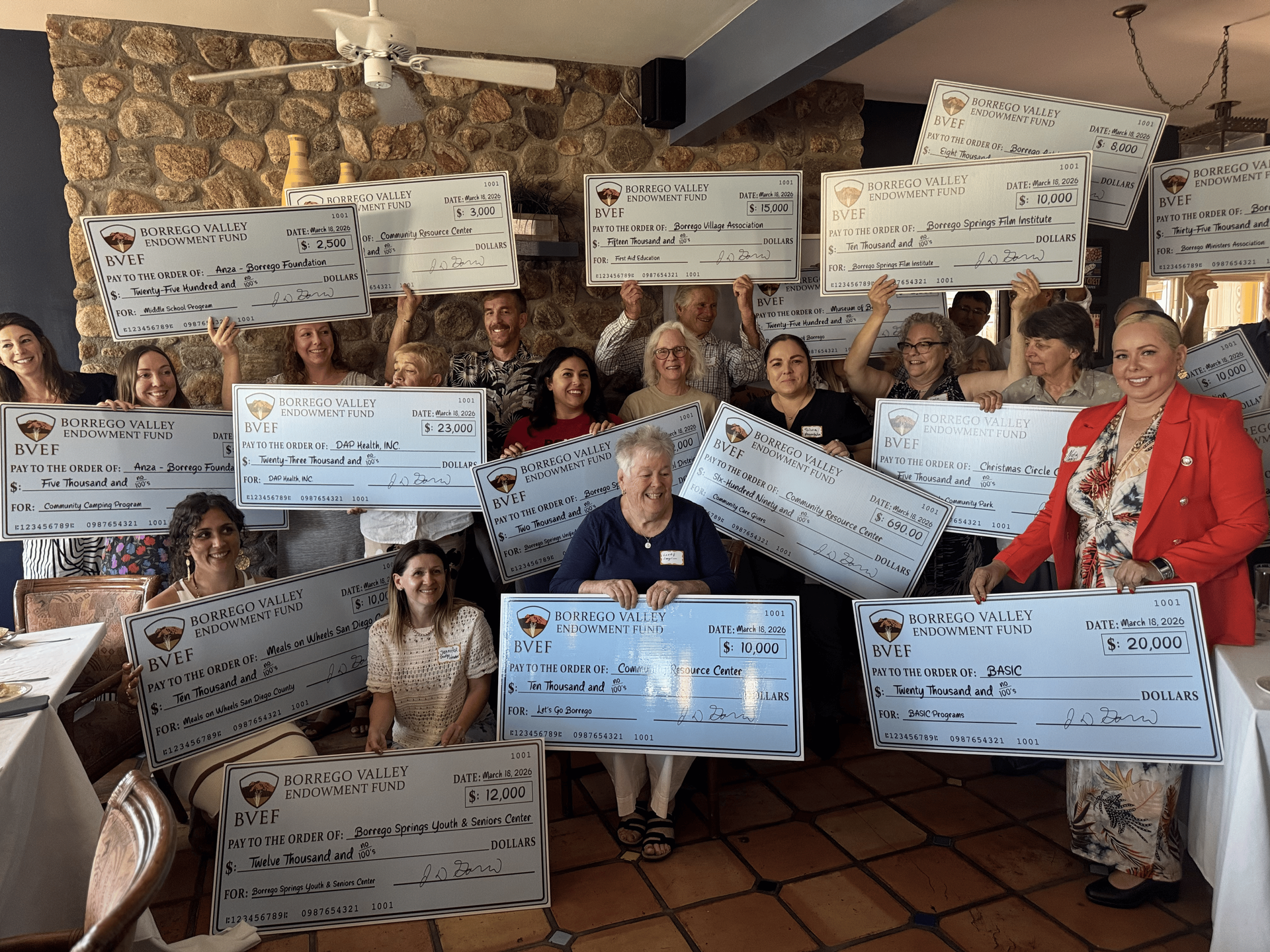BVEF awards grants to Borrego Springs nonprofits supporting healthcare, education, arts, and community programs at the 2026 luncheon.