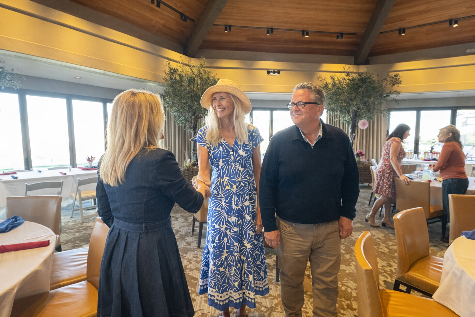 A community BBQ luncheon was held at Rams Hill Golf Club with Rebecca Jones, a candidate for San Diego County Supervisor. Hosted by Daniel and Nancy Wright, the luncheon included opening remarks by Daniel Wright, a brief address from Jones, and a community Q&A.