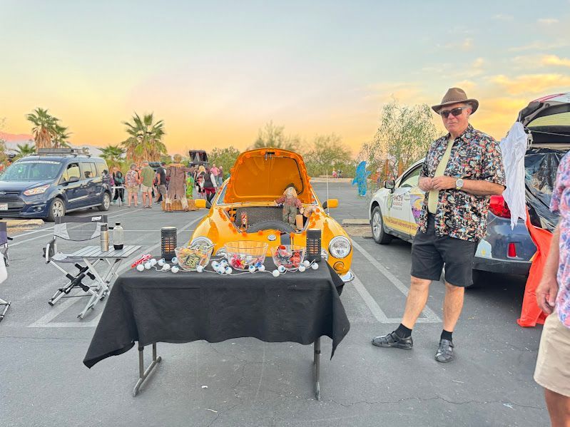 Borrego Springs families gathered at The Mall on October 31 from 5–7 PM for a fun and safe Halloween celebration. The annual Trunk or Treat event filled the parking area with decorated cars, candy stations, photo booths, and Halloween music under the evening sky.