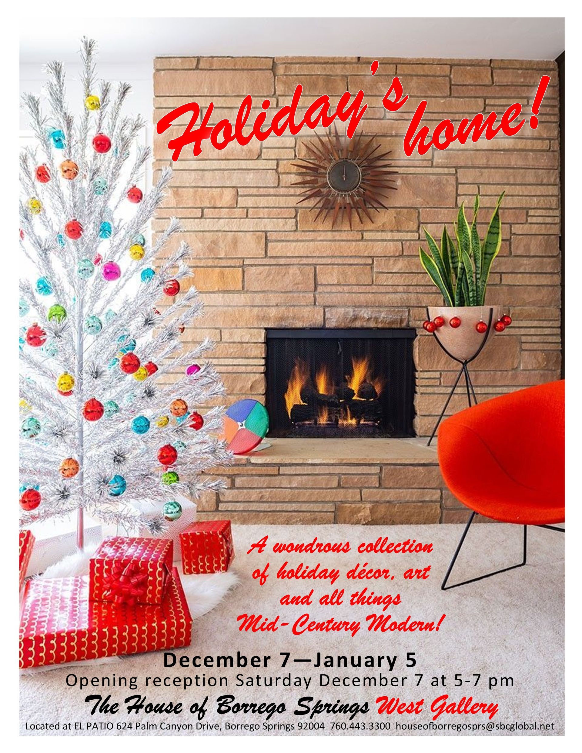 The House of Borrego Springs West Gallery invites you to "Holiday’s Home," a festive showcase of holiday décor, art, and all things mid-century modern.