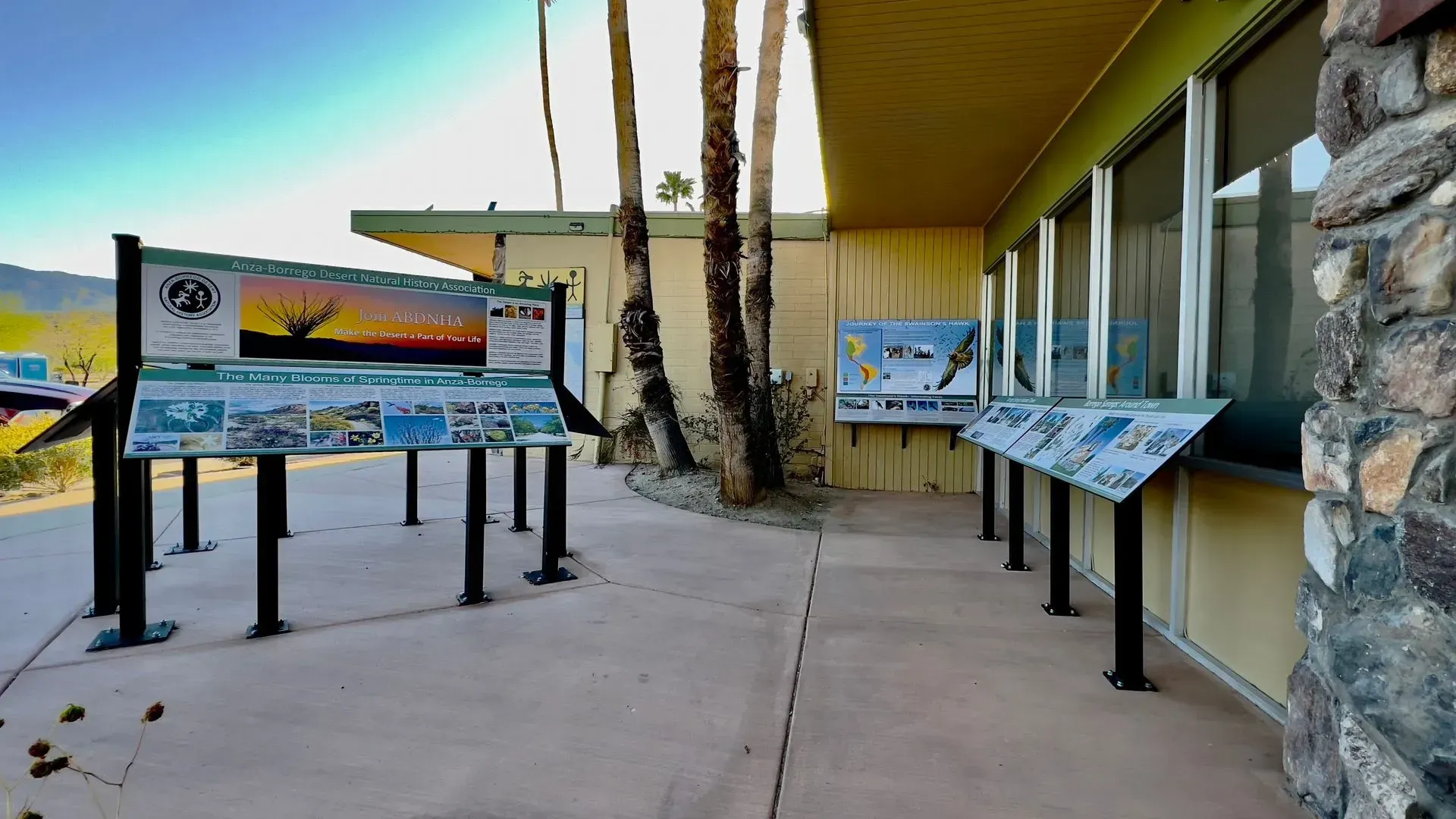 The informational panels at the Anza-Borrego Desert Natural History Association (ABDNHA) Visitor Plaza offer a wealth of knowledge about the Borrego Springs area and its natural environment.