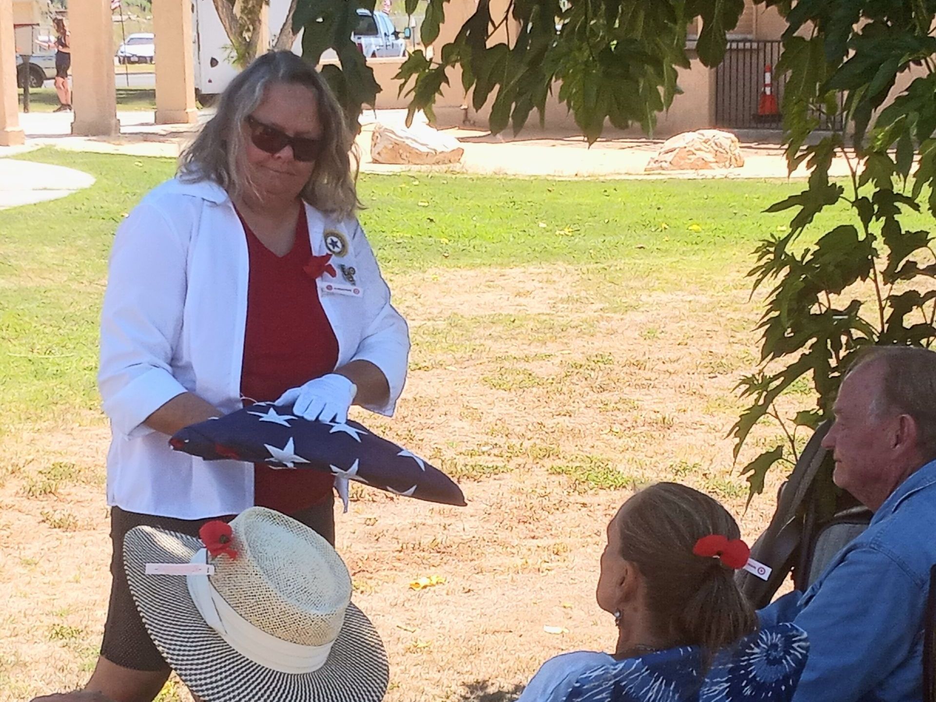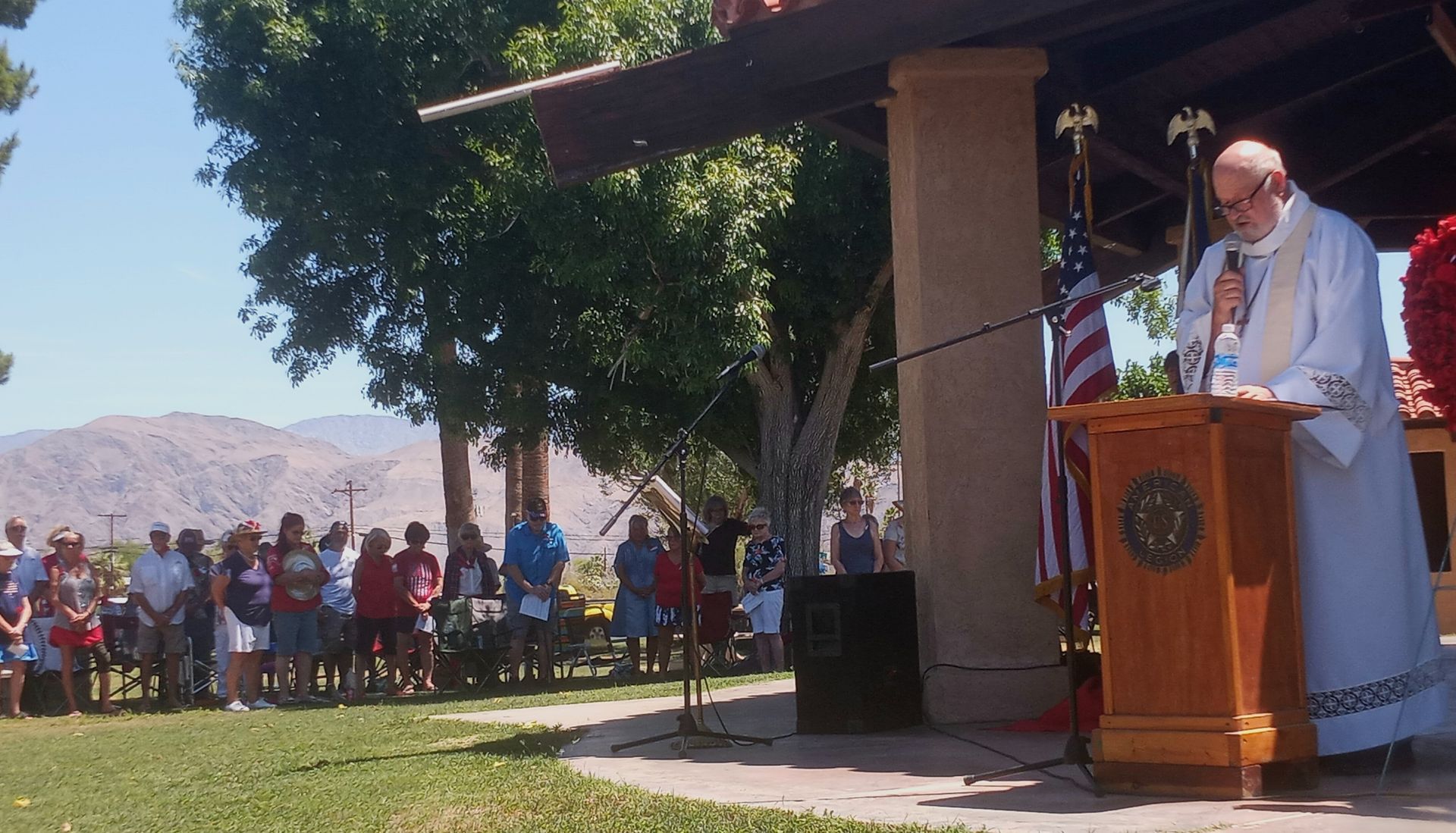 The ceremony began with the posting of the colors by the Color Guard, followed by Judy Taylor singing the National Anthem. ChrisAnn Wells, ALA President, led the Pledge of Allegiance, and Father Dave Madsen from St. Barnabas Episcopal Church and a member of the Borrego Ministers Association gave the Chaplains’ Prayer.