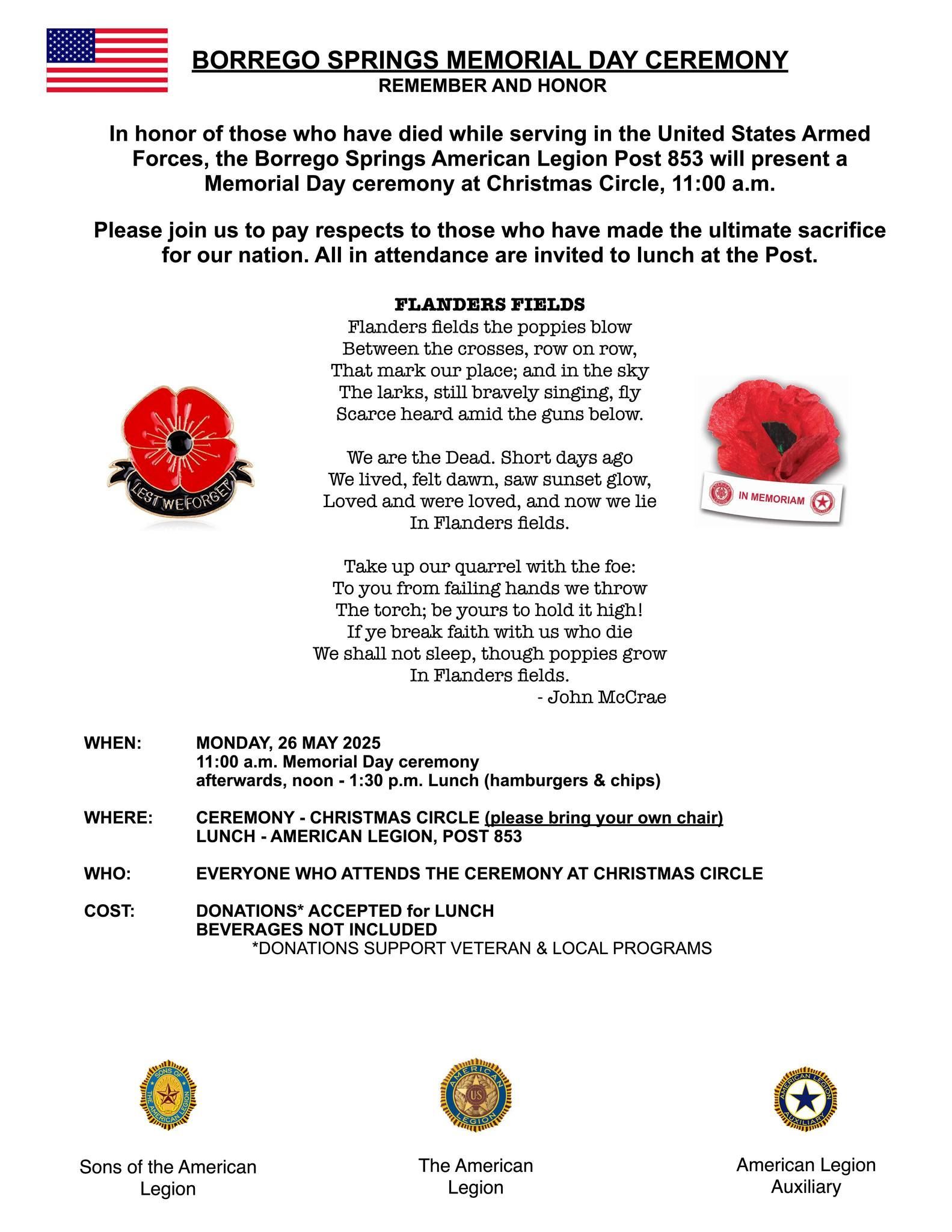 Borrego Springs Memorial Day Ceremony - Remember and Honor