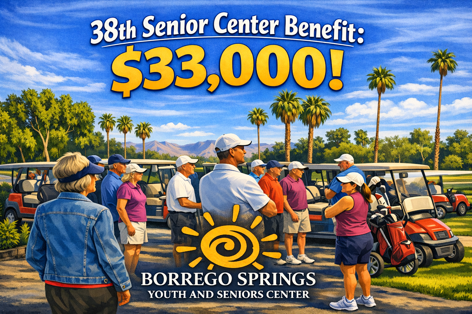 The Roadrunner Club Association’s 38th annual Senior Center Benefit golf tournament raised $33,000 for the Borrego Springs Youth and Seniors Center, according to Executive Director Teresa West.