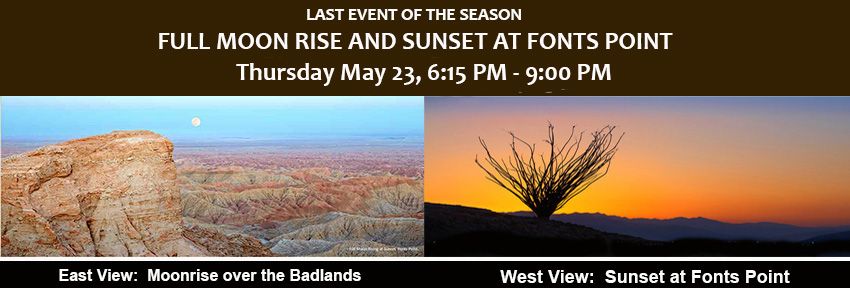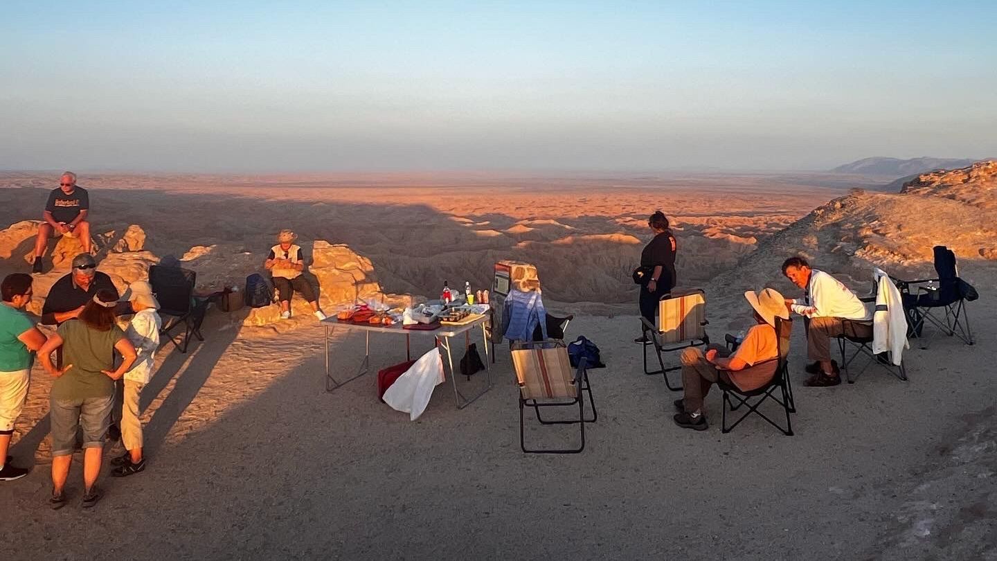 On May 23rd, a group of about 10 gathered at the ABDNHA parking lot for a special event marking the end of the season. This "Sunset and Moon Rise at Fonts Point" gathering, led by ABDNHA Program Director Mike McElhatton, brought together locals and visitors for a unique experience in the heart of the desert.