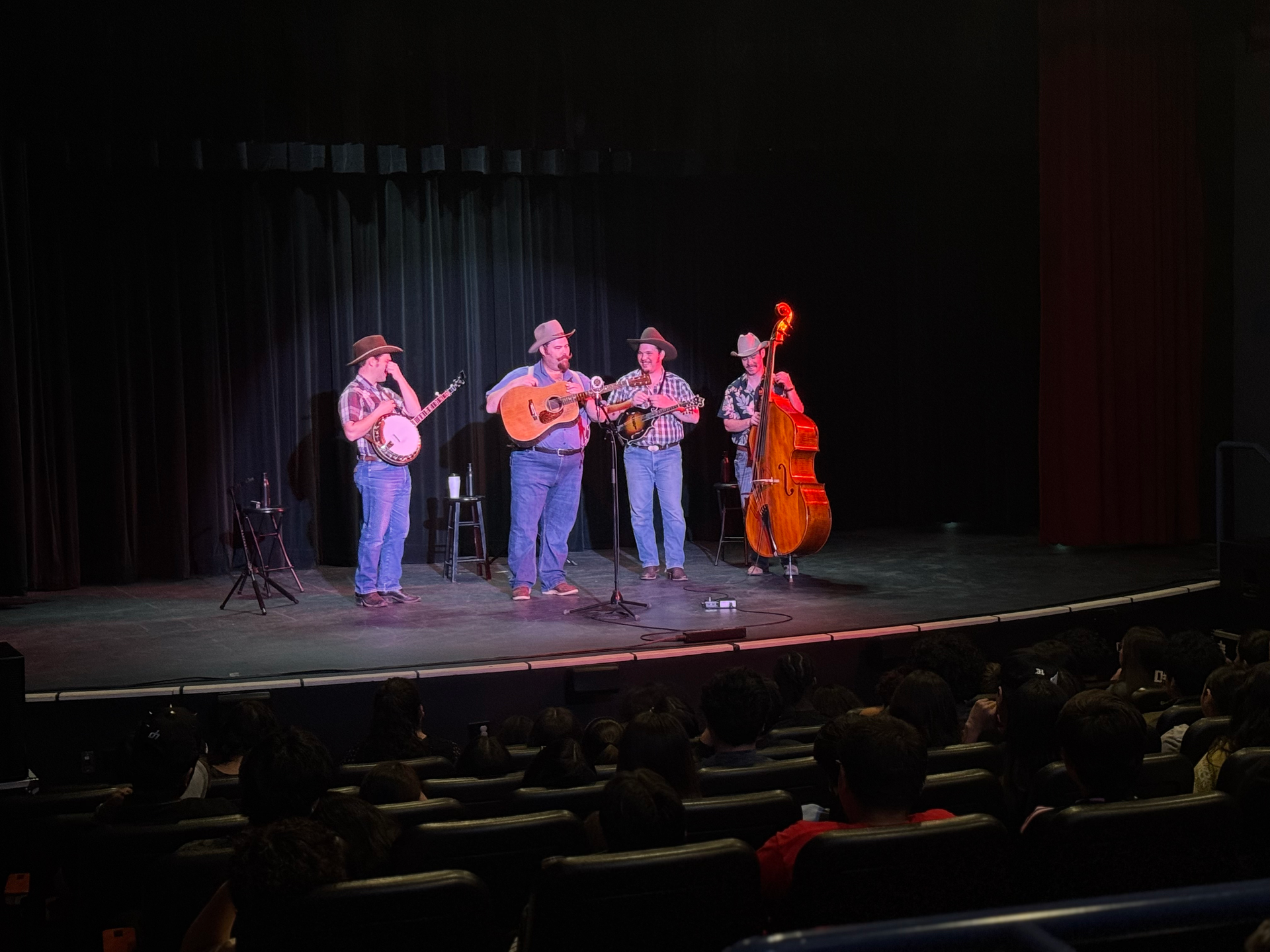 Students did not just hear music. They experienced live acoustic instruments in a real theater, watched professional musicians interact on stage, and listened as the band spoke honestly about building a life in music.